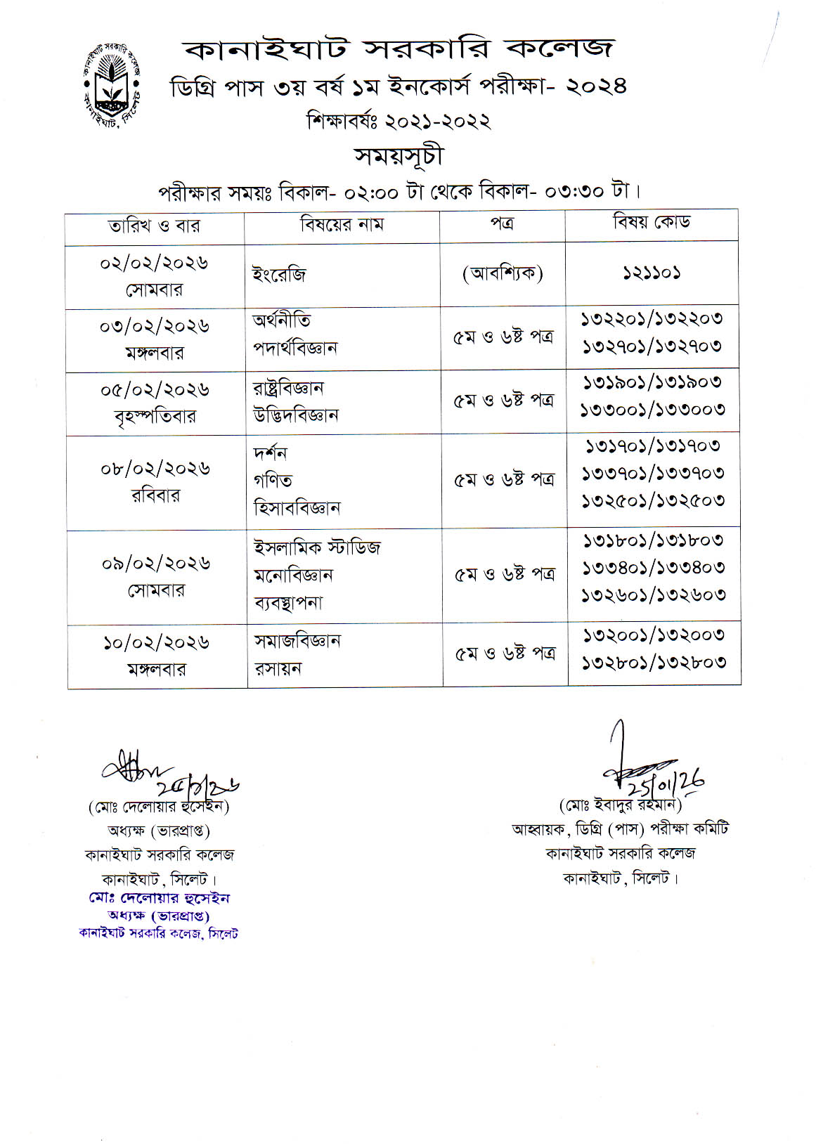 ২০২৪ সালের ডিগ্রি পাস ৩য় বর্ষ ১ম ইনকোর্স পরীক্ষা সংক্রান্ত বিজ্ঞপ্তি।