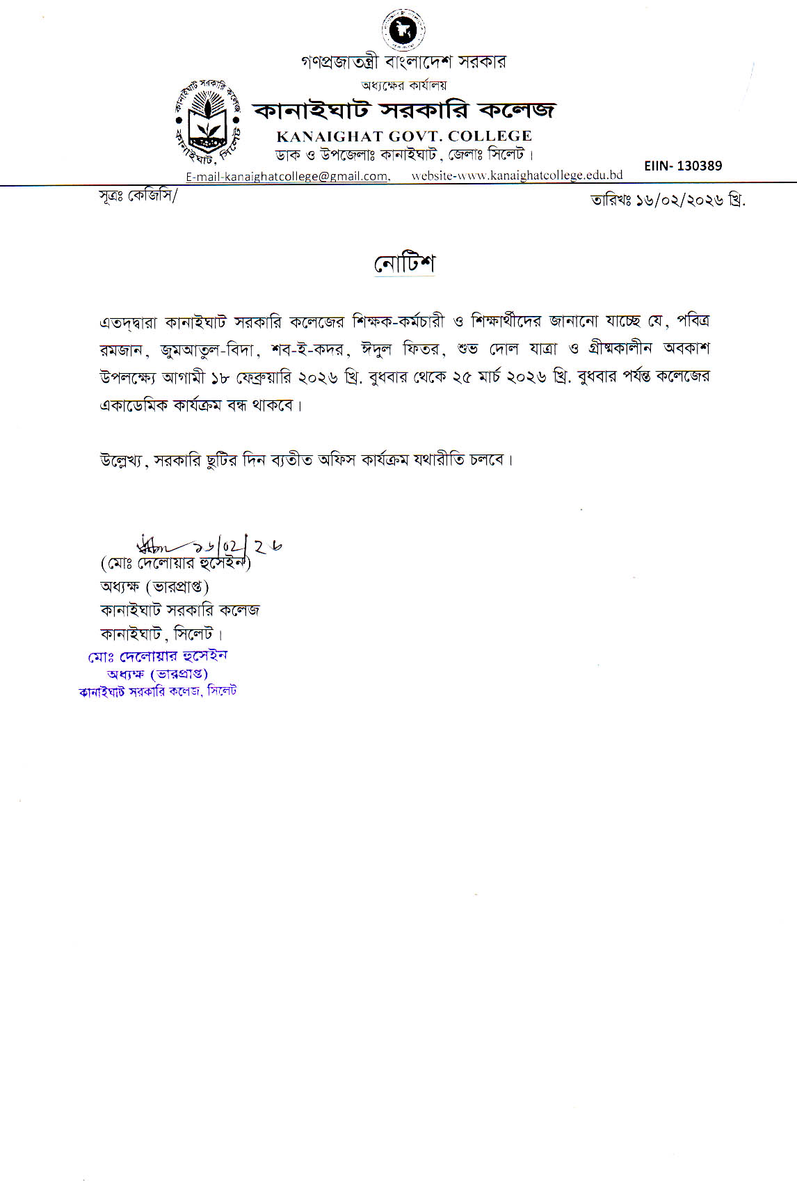 c1713@nu.ac.bd/kanaighatcollege@gmail.com