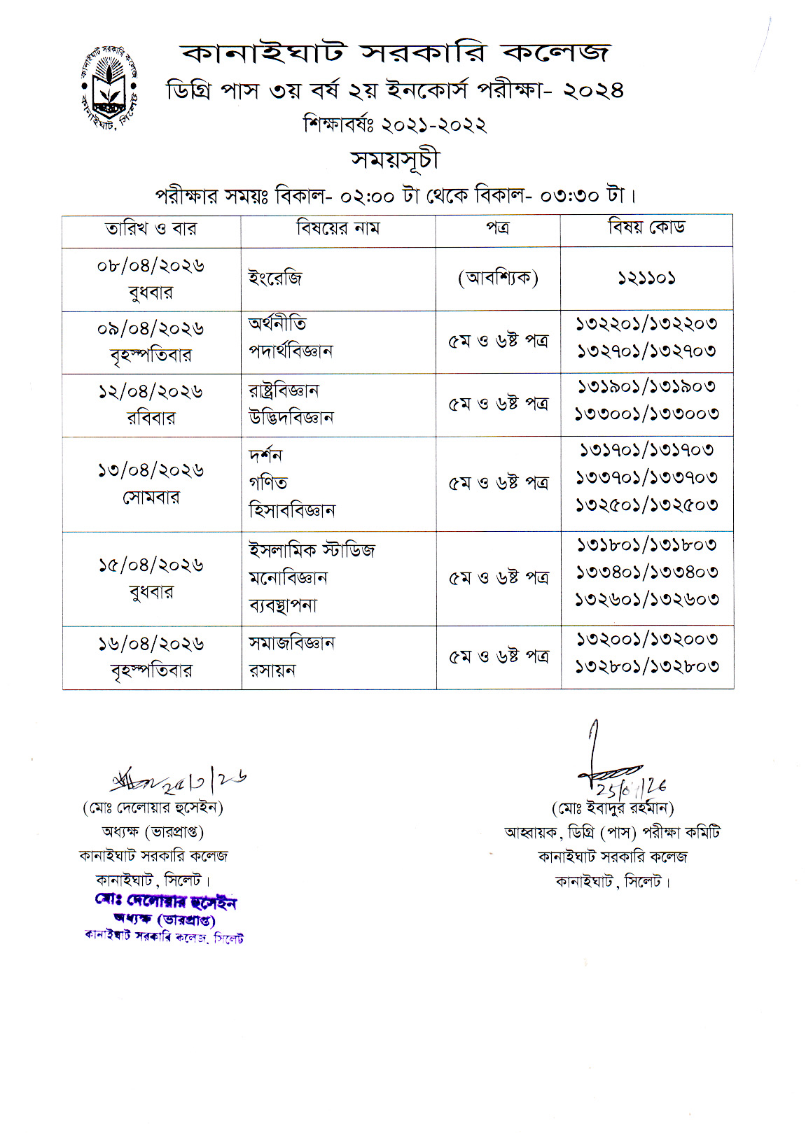 ২০২৪ সালের ডিগ্রি পাস ৩য় বর্ষ ২য় ইনকোর্স পরীক্ষা সংক্রান্ত বিজ্ঞপ্তি।