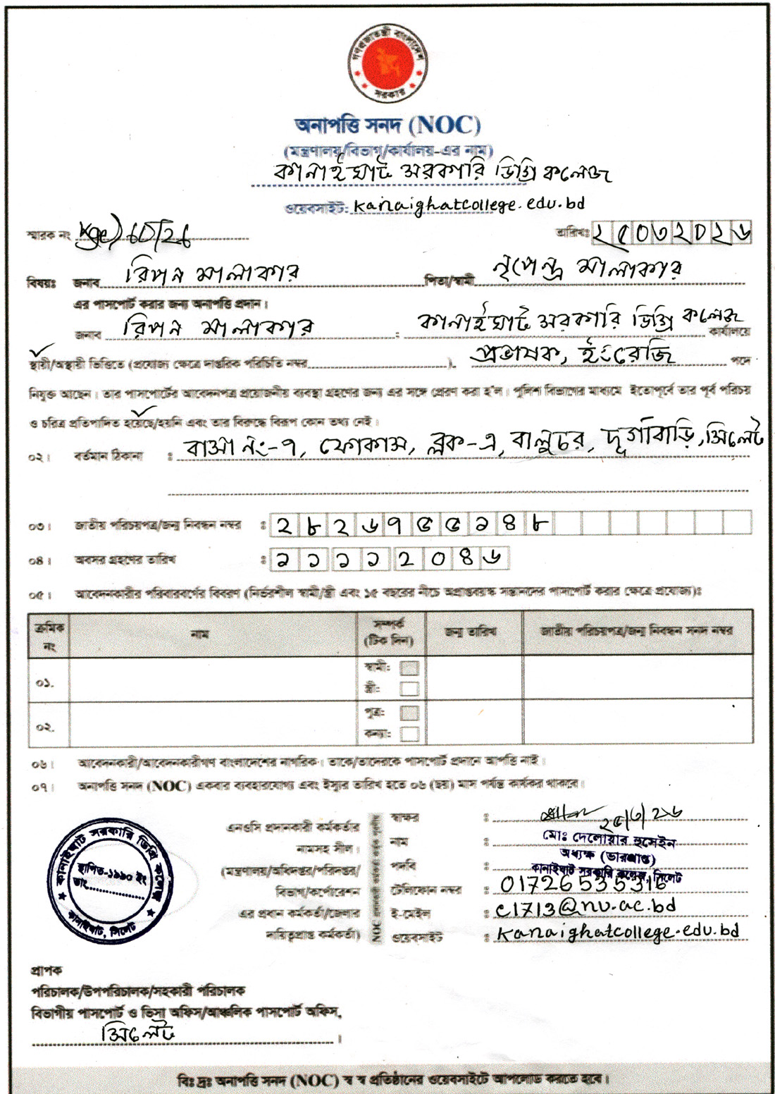 c1713@nu.ac.bd/kanaighatcollege@gmail.com